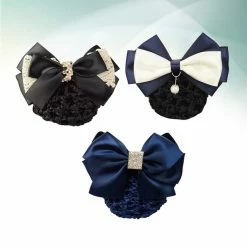 Hot Sale 🎉 Lurrose 3pcs Elastic Bowknot Decor Snood Net Barrette Hair Clip Bun Cover Hairpin For Lady 👩 Women 👏