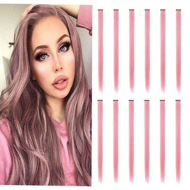 Package Include: 12 PCS Party highlight colorful hair extensions with clips.