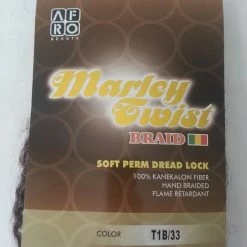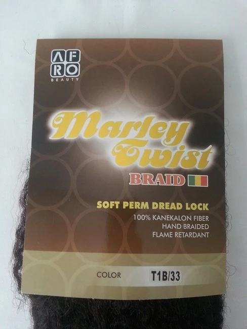 Afro Beauty Collection Marley Twist Braid (Soft Perm Dread Lock) Actual pictures of the item Marley Twist Braid Afro Beauty Collection Soft Perm Dread Lock 100% Kanekalon Fiber Hand Braided Flame Retardant Washing Instructions: Fill a basin / sink with cool or lukewarm water. Add a dash of shampoo to the water and gently swish the product. Rinse the product thoroughly in the cool water. Gently shake and let the product air dry. Do not brush, blow dry or use other heating sources while the product is wet. Do not use curling irons or other heating utensils on the product. Setting is not necessary because the curl will roll back into it’s shape when it’s completely dry. ATTENTION: Actual color may vary due to monitor color settings.