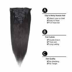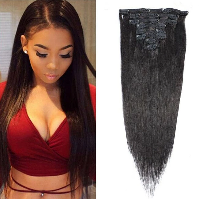 - ❤ The color is 1b/Natural black, No-tangle, no-shedding, product life: 6 to12 months(depending on care and usage). Hairstyle: kinky straight clip in hair Extension.