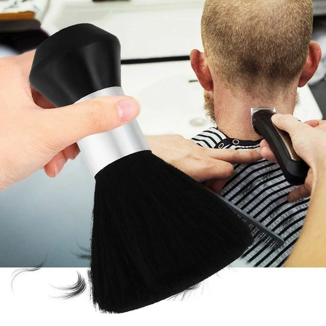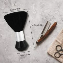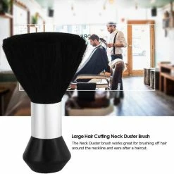 **Features:** Perfect accessory for all barbers & hair stylist. Unique design is great for dusting around the ears & neck line. Soft hair touch feeling, very easy to use. Convenient and durable. Removes Hair quickly and easily. **Specifications:** Hair Material: Wool hair Handle Material: Plastic & Stainless Steel Color: Black Hair for the brush Size:app 14.8*8*3.3cm **Package List:** 1 * Neck Brush
