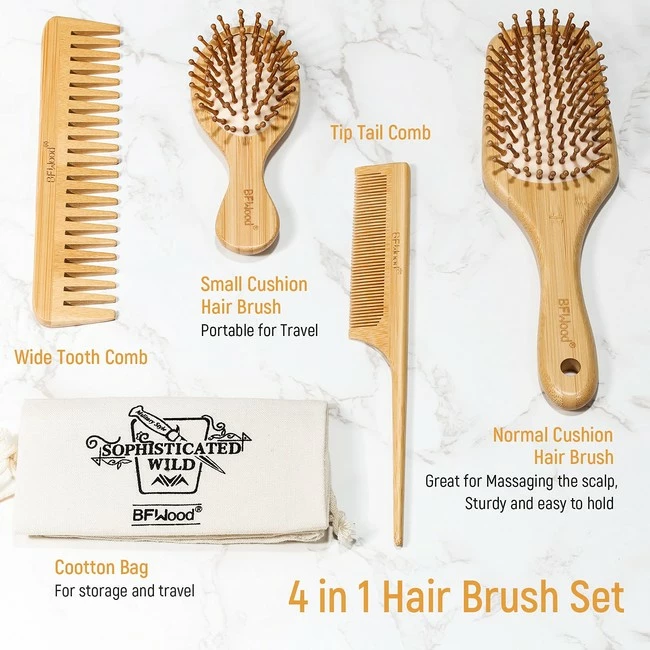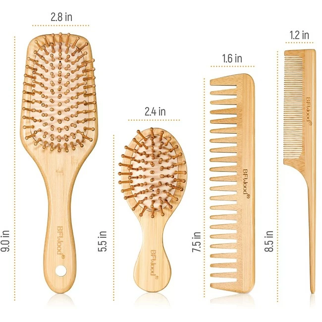 BFWood Bamboo Hair Brush Set, Eco-Friendly Wooden Hair Brushes and Combs Set for All Types of Hair in Family by BFWood Store