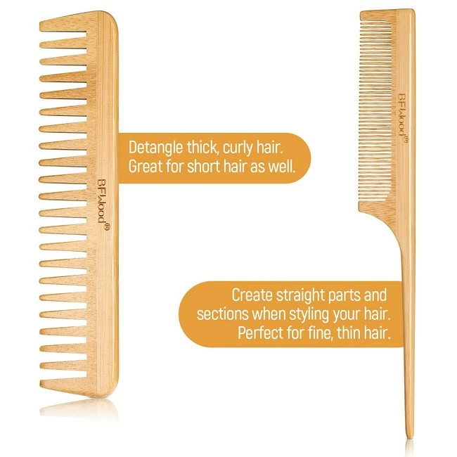 - 2 Different Type of Combs: The wide-tooth comb makes combing easy even if you have thick curly hair. It detangles your hair without much effort. The pointed-tail comb can be used for detangling, parting, or backcombing; it also functions as a hairbrush cleaning tool. Both combs can be used by both women and men.