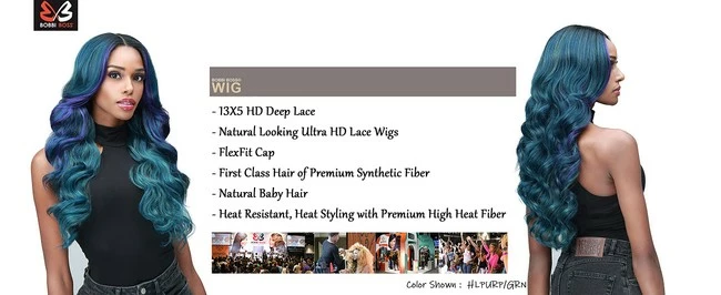 **Bobbi Boss HD Lace Front Wig 13X5 Deep Lace Part MLF670 Brynn** **Color Shown: HLPURP/GRN** **”Colors of image and actual product may slightly vary based on screen resolution.”** BOSS LACE Wig by BOBBI BOSS is designed to give a natural hairline with a seamlessly blending lace front. Individual strands are hand-knotted for a style that’s believably natural in look and movement. Available in a wide spectrum of classics – to the latest and greatest in style and color. **HD ULTRA SCALP ILLUSION**