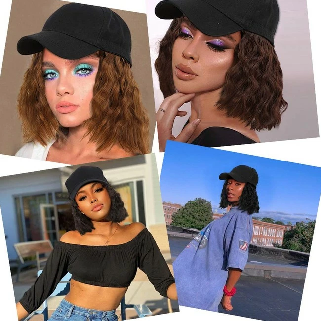 - HAIR STYLE:Short curly wave baseball cap wig are made from high-quality synthetic fibers permanently attached hair adjustable straps to fit most size/shape heads