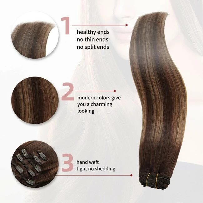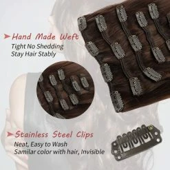 - Quick and Easy to Put or Remove: Clip hair extensions is easy and quick for adding volume and length. Anyone can do it. No need to go to the salon, easy to wear in five minutes. You can refer to our page description for wearing. Double weft-Lace covered, quality metal clips are well sewn into each weft firmly, easy to put in and take off as you want