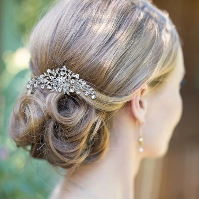 - Look wonderful with a chic French pleat, a feminine side chignon or a half-up do. This cluster leaf wedding hair comb is made of crystals. Wearing a dinner dress, formal gown or spectacular in casual wear, matching this elegant flower hair piece accessory, it will make you more eye-catching in vintage theme party, wedding and prom.