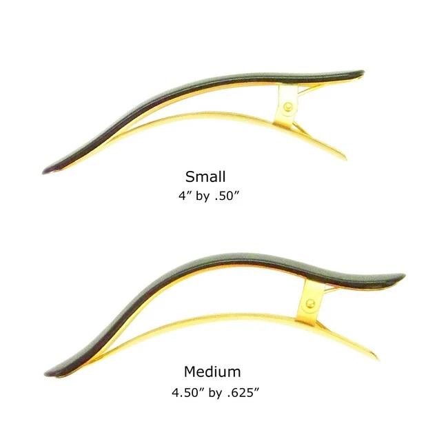 Ficcare’s Classic French Acetate Ficcarissimo in Giraffe. The Ficcarissimo clip is designed to secure all your hair and look effortless at the same time. Depending on volume and thickness of your hair, select the Small or Medium size.