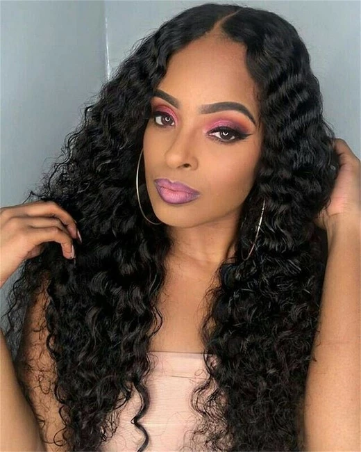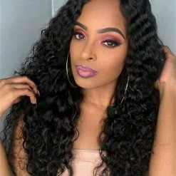 **150% density deep wave Lace frontal human hair wigs** **Hair Material๏ผ** 9A grade 100% Brazilian virgin human hair,soft and smooth. **Hair Style:** Deep curly wave 13×4 lace frontal human hair wigs (150% density). **Hair Color:** natural black color. **Hair Quality:** Full and thick, No chemical, No shedding, clean, soft, resilient. natural hairline, skin-friendly. **Length & Weight:** 10-24inches & 220-300g. If the products on sale length are not what you like,please contact us to get it. **Lace attribute:** Middle brown Swiss lace,clear and breathable. Suitable for most dark skin groups, 13×4 inch lace frontal,22.5inches medium cap size,and can be resized. Natural hairline and more baby hair. **100% Satisfaction Guarantee:** Customer satisfaction is always our top priority. If you have any questions about our product, please feel free to contact us and we will be happy to assist you. If after purchasing,you find that it is not suitable for you,just return it and keep it in their original state. **Hair care:** **1.** Wash your wig 1 to 2 times every week. **2.** Comb the hair gently with your fingers before washing. Do not rub or twist hair. **3.** Add mild shampoo to cool water and wash hair carefully. **4.** Rinse the hair in clear water 2-3 times. **5.** Have hair to dry naturally. Use a clean dry towel to absorb the moisture then let it dry. Put hair essential oils to soft hair after wash. Do not expose to sun or dry by hair drier. **6.** Comb curly hair gently with your fingers from top to end,and then use a suitable comb,do not brush. **Attention:** All hair products will shed or tangle slightly when they are long time used, your natural hair also sheds or tangle – so does this. If you wash and deep condition the natural hair wig carefully, this remy hair wig will be used for long time. At last,thank you for choosing us.