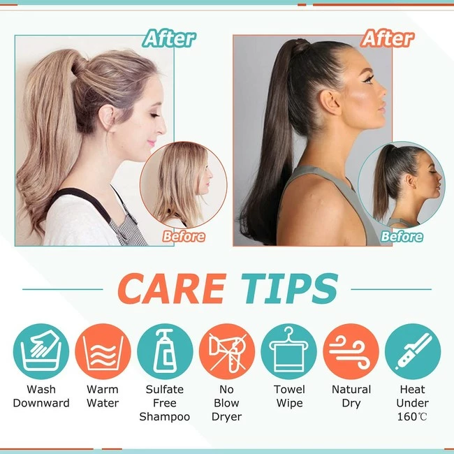 - Healthy Hair: Full Shine Wrap Around Ponytail Hair Extensions Is Made Of Real Human Hair, Smooth Straight And No Tangle, It Can Be Treated & Styled Like Your Own Hair. It Works With Different Hair Lengths And Can Clip Into Thin Or Thick Hair, Blend Naturally With Your Own Locks And Virtually Undetectable, No One Find Your Secret!