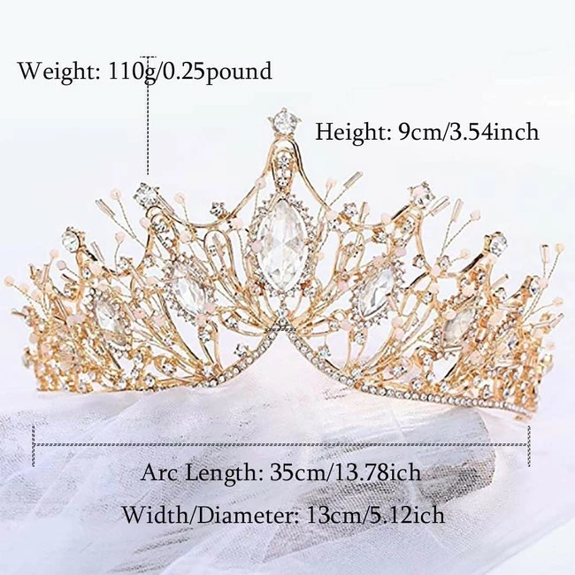 Sparkling with clear round cut rhinestones and drop-shaped crystals, this crown evokes courtly grace and elegance. Be sure to make you shine on your wedding day! Every girl deserves to feel like a princess or a queen on her special day; this shining rhinestone crown will make your dream come true;sparkling headpiece, ideal for wedding, anniversary, parties or any other special prom. Color: silver and gold plus shining crystal, let you become the unique princess/queen. Size: It is light enough, fits most women and girls, no worry about size problem, just feel free to choose it. Please Note: Crowns color may be slightly different from the photograph due to the light and the difference of screens, and please excuse 1-2 cm/0.4-0.8inch errors because of handmade item.