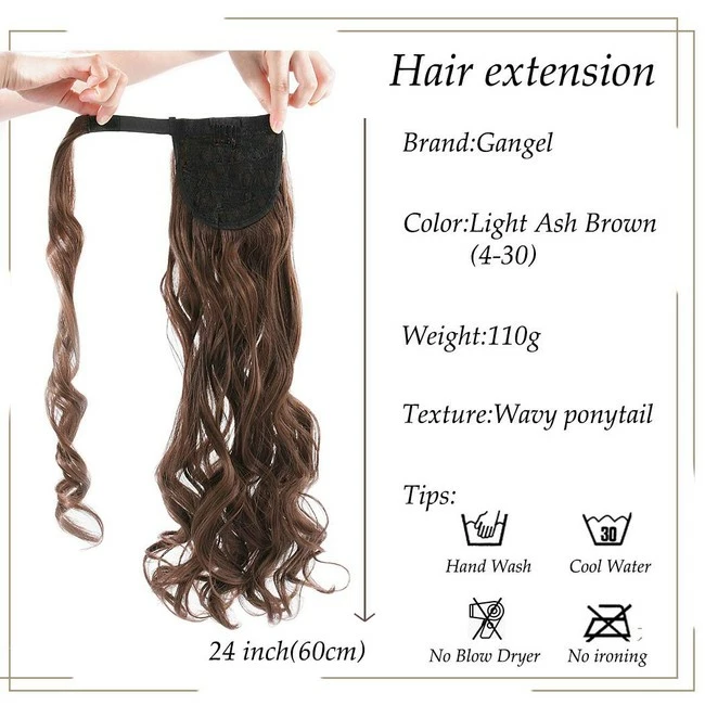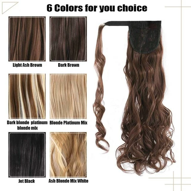 ♦ **Stylish ponytail wig improves your temperament and make you more confident!** ♦ **Soft wavy hair pieces with velcro to wrap around your ponytail,** **secure and comfortable to fix with your own hair.** ♦ **Tips:** Due to long transportation, the hair extension may not be in excellent condition when you receive it. ♦We recommend that you comb through the ponytails hair piece gently with your finger once you open the package. ♦If you are not satisfied with the curly style, you may curl it by yourself. ♦ **But be careful that you must care for it detailed** **with conditioner after curling!** ♦Otherwise the hair extensions maybe will loses luster and becomes rough. ♦Since the ponytail extensions are sewn by hand, it’s normal that some hair fall off when first use. They are different with your hair, the hair ponytail may get tangled due to lack of nutrition. You may use some conditioner and fill them up with water, then spray on wig.If there’s no conditioner, just spray some water to make them weter and prevent getting tangled in some extent. ♦ **Refund policy:** Brand new. If you want to Refund,please keep the tag and my product new. ♦ **Two conditions will not be refunded any more:** 1: The product is used or damaged. 2:The tag is missing or damaged.