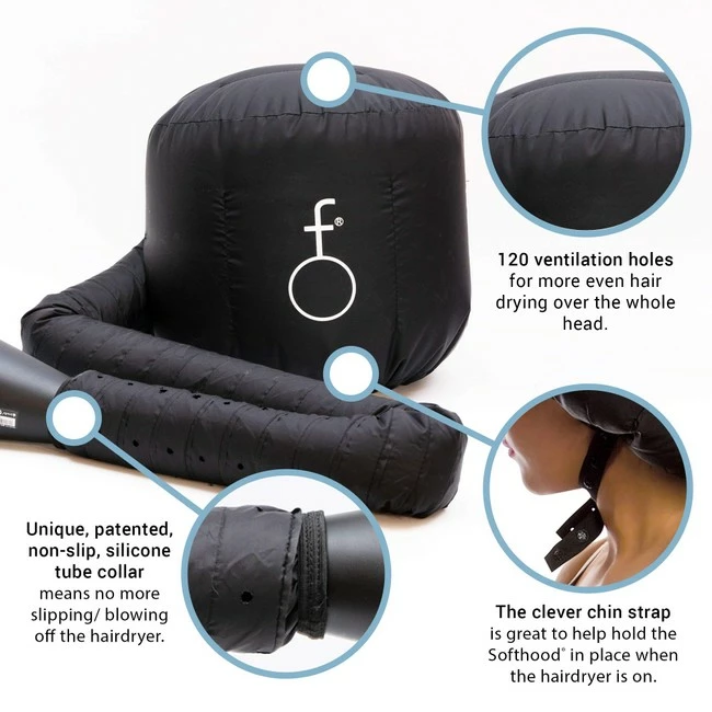 Bonnet Hood Hair Dryer Attachment Hair Flair Deluxe Softhood (Black) by Hair Flair Store