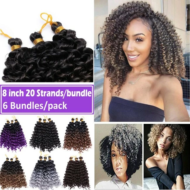 Size:8 Inch/6 Bundles Β |Β Color:black to silvery grey β€Popular hairstyle between African American. Water wave is an increasingly popular style between African American, and can make you cool and sexy at the same time. β€Β Better quality ,lower price.We have over 15 yearsβΒ experience in producing hair products, everything we sell is directly supplied by our own factory. You will surly enjoy our crochet hair at lower price.Β WE OFFER:1-Β Free shipment, fast delivery.2-Β Considerate costumer service. If you have any problem while shopping, feel free to contact us. We will reply and solve the problem for you in 24 hours.3-Β Return and change service. If you do not like the product or want another color, please contact us for return and exchange.Β About the product:Hair type: marlybob/ marlibob crochet hair, deep wave/water wave/wand curl hairColor: 15 colors availableLength: 8βTotal weight: 180g (30g per bundle)Package:6 bundles/packEach bundle has 30 strandsKindly Remind:Considering light and different monitor, the exact color might be slightly different from the pictureΒ showed.