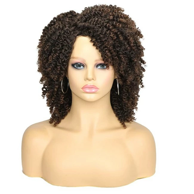 **Hanne Fashion Ombre Brown Kinky Curly Wig Short Curly Afro Wig Shoulder Length Kinky Curly Hair Wig for Black Women Synthetic Heat Resistant Full Wigs** **Product Details:** Material: High Quality Synthetic Fiber. Style:Short Kinky Curly Wigs. Color: Ombre Brown. Cap Size:Average Size(22.5inch). Function:Perfect for daily use,Halloween,concerts,theme parties,wedding,dating etc. **Features and Advantages:** 1.The premium synthetic wigs looks full and feels soft. 2.Elastic net cap, will bring comfortable feeling to your head. 3.Breathable and Comfortable for your head. 4.Can be adjusted tightness to fit all different size head, easy to install and manage. 5.Easy to wear and maintains curls well. 6.Especially for dark shin to show their beauty. **About us:** If you have any questions,please feel free to contact us,our customer service team will get back to you within 24 hours.We are looking forward to cooperate with you!
