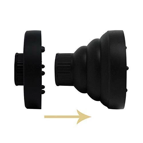 This diffuser has a **smart-folding design** engineered with high-grade, durable silicone. It is completely **collapsible** for **easy storage and fits conveniently in luggage** and on many full-sized hotel dryers.