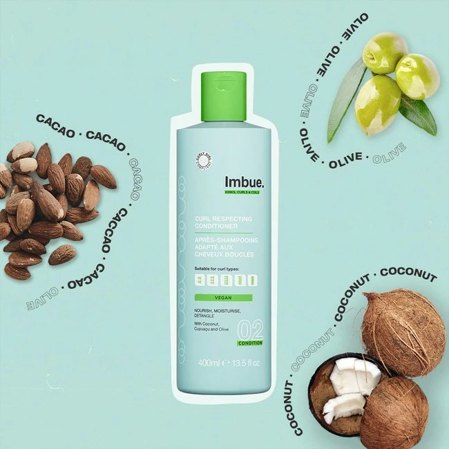 The perfect balance of lightweight nourishment and a dose of richness. Olive Oil combines with Cupuaรงu and Coconut to instantly cocoon curls and give just the right amount of slip for seamless detangling. After rinsing? Shiny, defined hair that is never heavy or weighed down. 100% Curly Girl compliant, Imbue is vegan with absolutely no sulphates, parabens or oil based silicones. Instead it has been created with a cocktail of loving plant oils to nurture and empower curls. Weโre bringing those coils out to play in all their glory, all the way from 3A to 4C. Imbue is a curl worshipping vegan haircare brand dedicated to curls and coils. Our products are 100% Curly Girl compliant. We only use moisturising, sustainably sourced ingredients like Coconut Oil and Cupuaรงu Butter because we believe in respecting those curls. Our formulations never contain oil-based silicones, parabens, sulphates, drying alcohols, mineral oils or waxes โ because we know itโs not about controlling kinks, curls and coils itโs about liberating them. Our collection of products are suitable for curl and coil types 3A to 4c. We have a range of products to cleanse, condition, and style whilst locking in moisture. Imbue has been designed to strengthen, define and empower your curls and coils so you can start every day with the confidence that you have great hair.