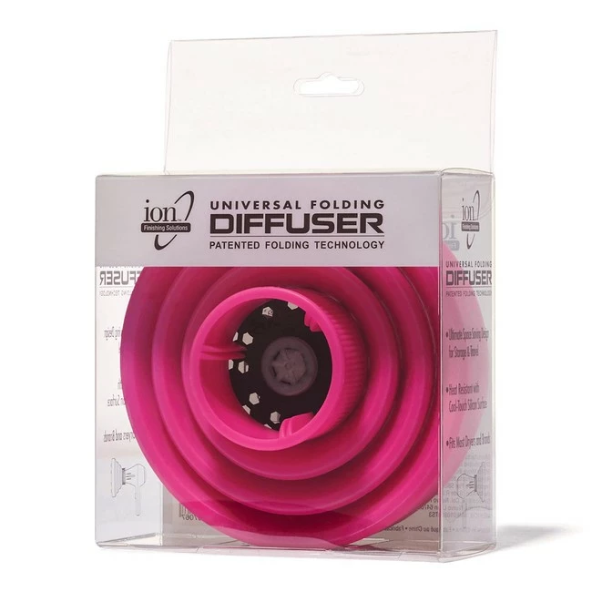 The ion Universal Pink Diffuser gives hair the ultimate blow drying experience! This heat resistant diffuser features a cool touch silicon surface, ensuring that hair can be styled with heat up to 450ยฐF. It has the ultimate space saving design that is great for storage or travel. Diameter of diffuser opening is 2 1/8โ. Fits almost any dryer or brand.