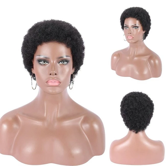 - Wig Material: Brazilian Human Hair, The Short Afro Black Curly Wig is Made of Premium Remy Human Hair, Super Soft, Natural Looking, tangle-free without shedding.