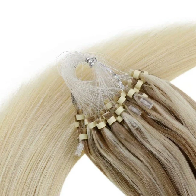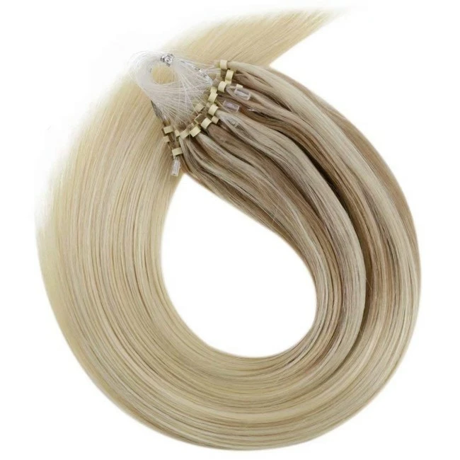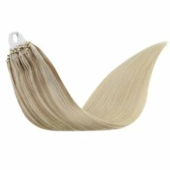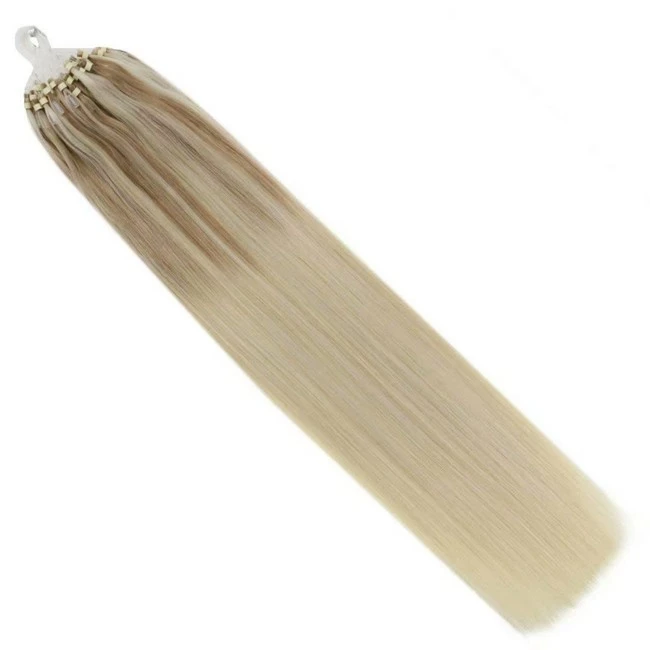 LaaVoo Hair Extensions Micro Ring Remy Hair Balayage Micro Beads Hair Extensions Color Ash Blonde Mixed Medium Blonde to Platinum Blonde Microlink Hair Extensions Silky Straight 1g/1s 22″ 50g by LAAVOO Store