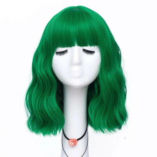 - 【Wigs Color】: Green Wig. Length: Medium. Style : Short Bob Natural Curly Wig . Hair Circumference: 19~23.6inch, also fit kids.