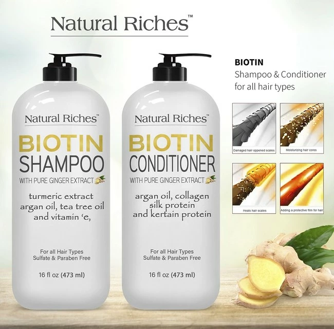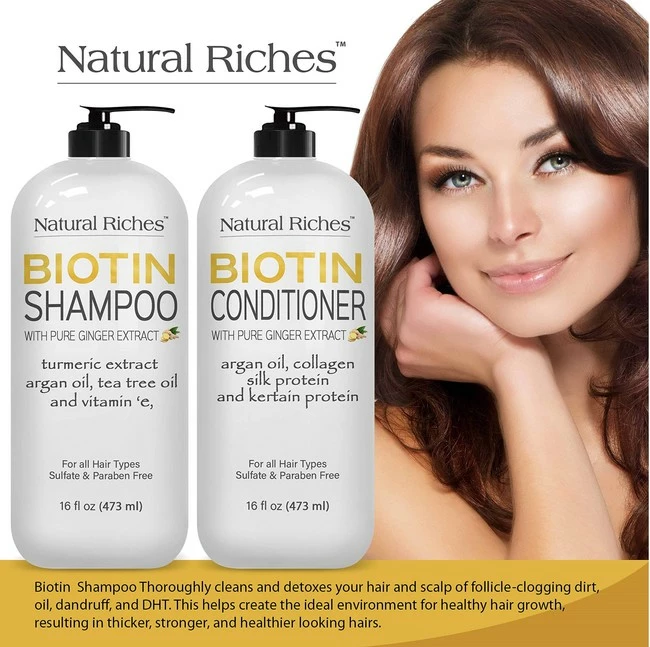 - Biotin Hair Loss Shampoo & Conditioner: Biotin Thickening Shampoo with Ginger and Turmeric extracts prevents hair loss. Helps unclog Hair Follicles. Herbal DHT-blocker formula for Healthy Hair Growth. Infused with Pro Vitamin B7, biotin & collagen helps boost each strand of hair, leaving it feeling thicker & fuller