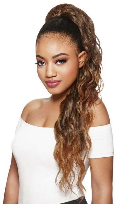 **Outre Synthetic Hair Ponytail Quick Pony Paloma** **STYLE UP IN LESS THAN 30 SECONDS** Quick Pony is a quick and easy-to-attach hair piece available in a range of the trendiest colors and styles. With all the convenience and comfort of a drawstring construction, and combs for a more secure wear, you can style up and go in less the 30 seconds.