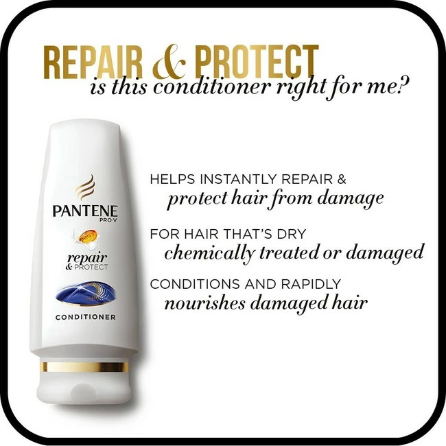 Fuel your hair with the nourishing power of Pantene Pro-V Repair & Protect Conditioner. This powerful Pro-V formula contains micro-moisturizers that wrap every strand for long lasting softness and manageability. Gently massage into hair and rinse to experience rapid nourishment and beautifully soft hair. Pair with Repair & Protect Shampoo for noticeable damage repair with 2X less breakage.* *shampoo & conditioner system vs. non-conditioning shampoo