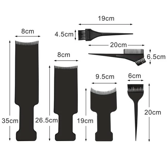 **Specifications:** Color: BlackMaterial: PlasticBig balayage board size: 35 x 8.2 cmMiddle balayage board size: 26.5 x 8.2 cmSmall balayage board size: 19 x 9.5 cmHair coloring brushes length: About 21cm **Feature:** 1. The hair coloring set is suitable for both home and salon, the brush helps dye better, easy and convenient to use, gives you a beautiful look.2. The sturdy highlighting board and bristle helps with coverage and won’t get much hair stuck in the brush, easy to clean and is reusable. **Package Include:** 3 x Balayage Highlighting Board3 x Hair Dye Brush