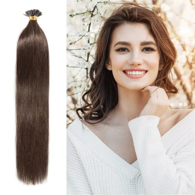 I Tip Remy Human Hair Extensions 100 Strands/Pack Pre Bonded Keratin Stick In Hair Extensions 16 Inches Cold Fusion Hair Piece Long Straight For Women 0.5g/strand #4 Medium Brown 16” 50g by Rich Choices