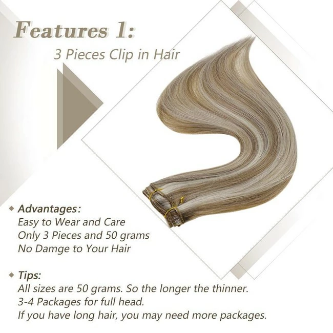 - SPECIFICATION: NOT THICK HAIR,The weight of highlight blonde hair extensions is ONLY 50g, get one pack is a good option if you have thinning hair. But if you want to make a full head, 3-4 packs are recommended according to your hair volume.