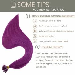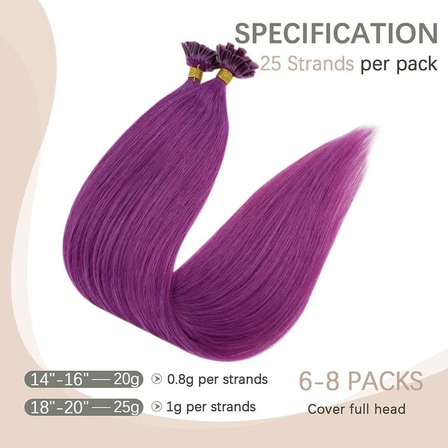 - Hair details: color: #Purple hair extensions; hairstyle: straight hair; length: 16 inch; specification: 0.8g/strand, 25 strands per set, totally 20g