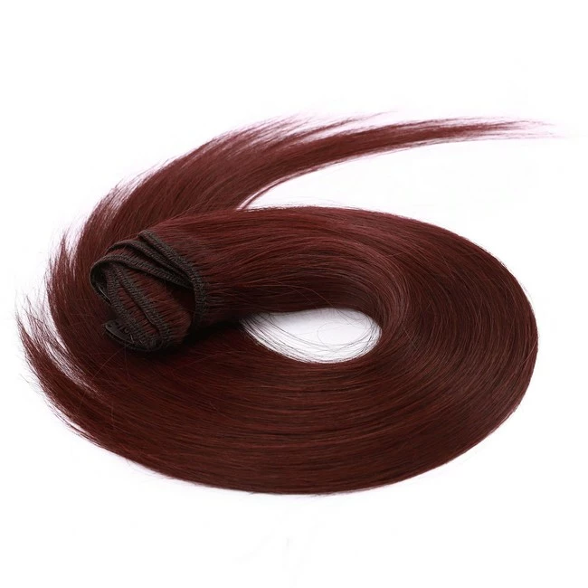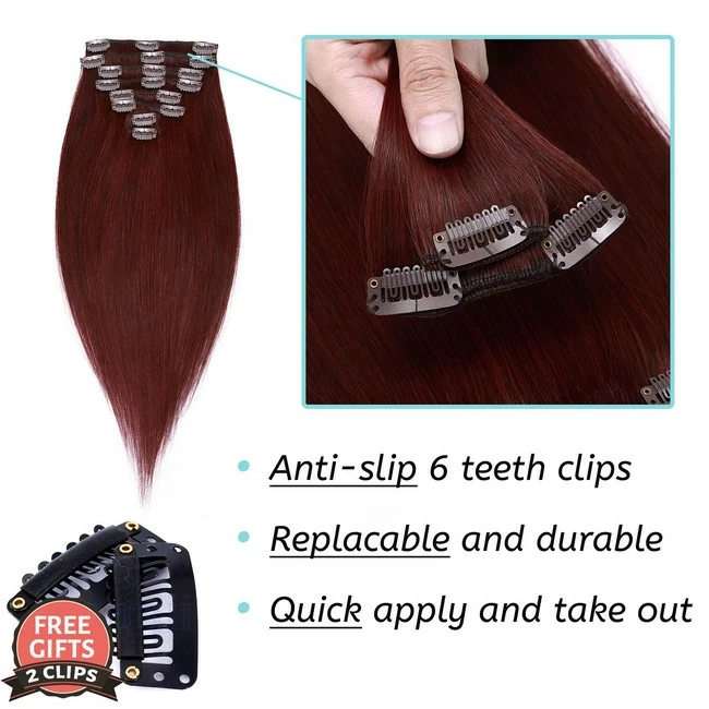 S-noilite 20inch Clip in Extensions Human Hair 8 Pieces 105g Full Head Clip in Natural Human Hair Extension Wine Red Grade 7A Thick Straight Clip on Real Remy Hair Ombre #99J