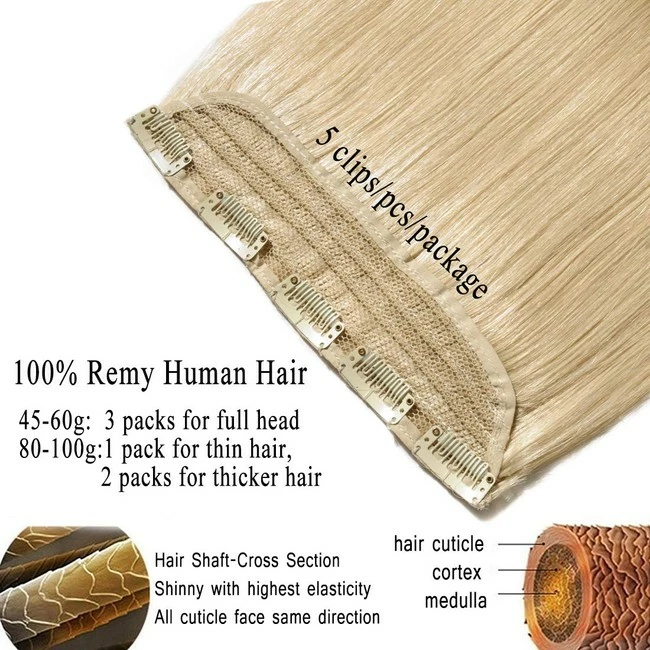 - โคKindly remindโค:One pack one piece with 5 clips. It’s totally thin! Please choose the amount of hair extension according to your own condition. 2-3 sets recommended if you would like a thick result.