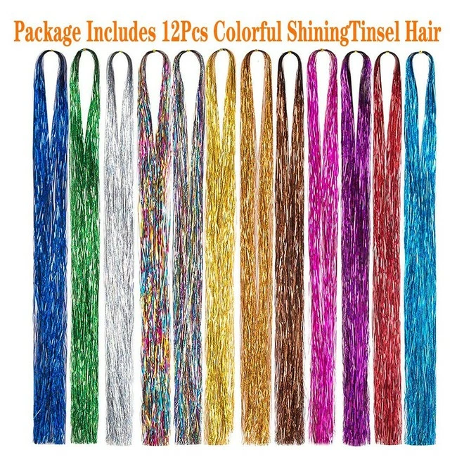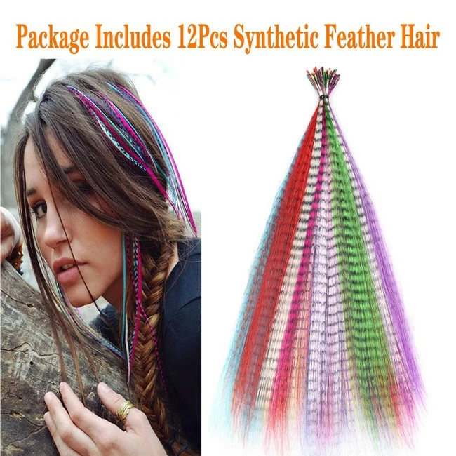 Package Includes:12Pcs Colorful Tinsel Hair+12Pcs Rainbow Clips Hair+12Pcs Synthetic Feather Hair+100Pcs Micro Links Hair Beads+18Pcs Hair Clips+1Pcs Crochet Hook+1Pcs Comb