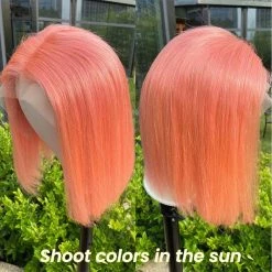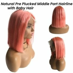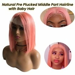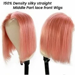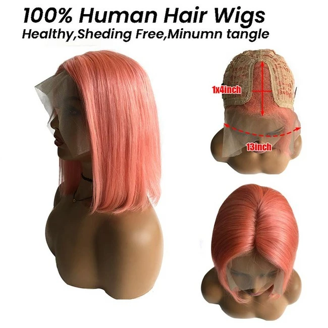 Pink Lace Bob Wigs Brazilian Virgin Human Hair Straight Bob Wigs for Women Pre Plucked Natural Hairline 13x1x6 Swiss Lace Pink Bob Wig 14Inch with Baby Hair 150% Density(Could be Restlyed) by Smavida Store