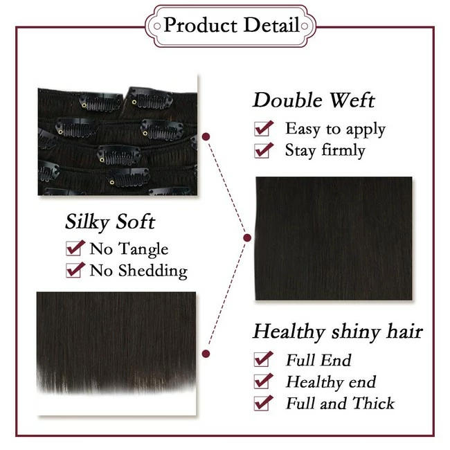 - Why choose Clip in Hair Extensions Human Hair Dark Brown instead of other categories?–♥ CONVENIENT & ABUNDANT ♥ Whether it is based on the convenience of wearing or the degree of supplementary hair volume, clip hair is the first choice for most hair extension enthusiasts.