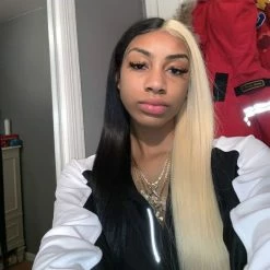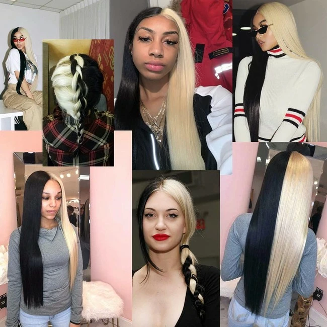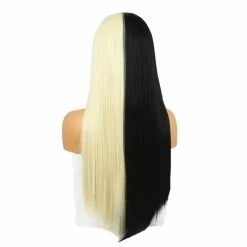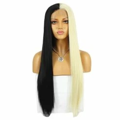 Half Black Half Blonde Synthetic Hair Wig None Lace Front Wigs 24 Inch Long Straight Hair For Black Women Machine Made Lace Wigs With Baby Hair Bleached Knots 150 Density #613 Cosplay by ten chopsticks