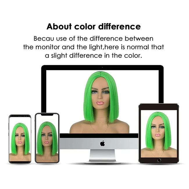 - [Professional Design]:This green bob wig with cute style,looks amazing , very pretty and feminine, It makes you look perfect and makes you be the focus!Suitable for all types of skin and ages.