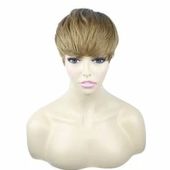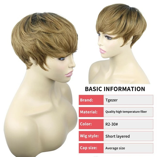 Tgezer Short Hair Pixie Cut Wigs with Bangs Ombre Blonde Short Pixie Wigs for Women Short Wigs Straight Slight Layered Wavy Synthetic Full Machine Wigs Non Lace Front Wigs Color R2/30