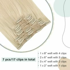 - 4.Details:The 120 gram clip-in hair extensions come in 7 pieces set that is incredibly easy to apply and has been specially designed to cover your entire head