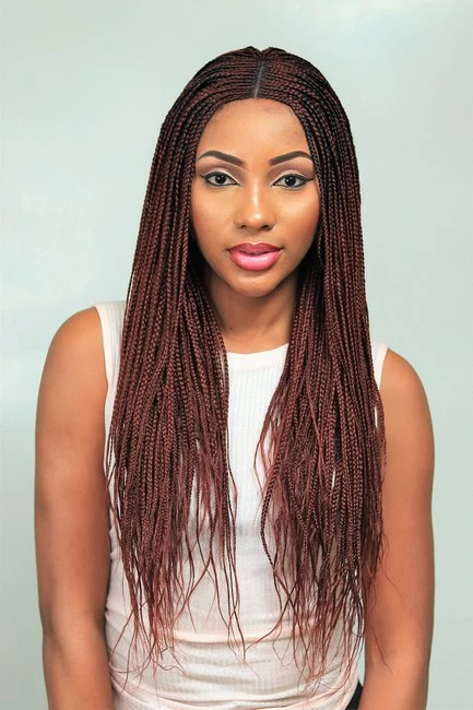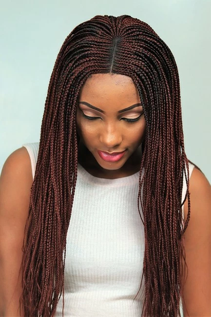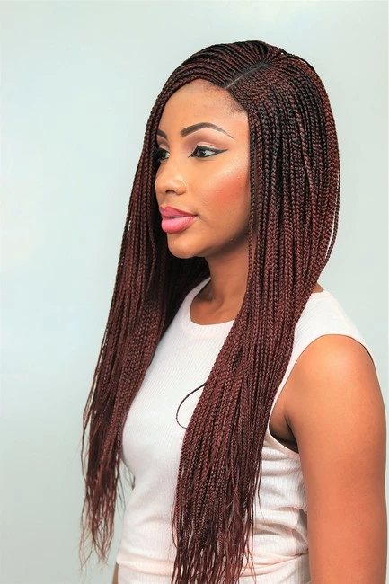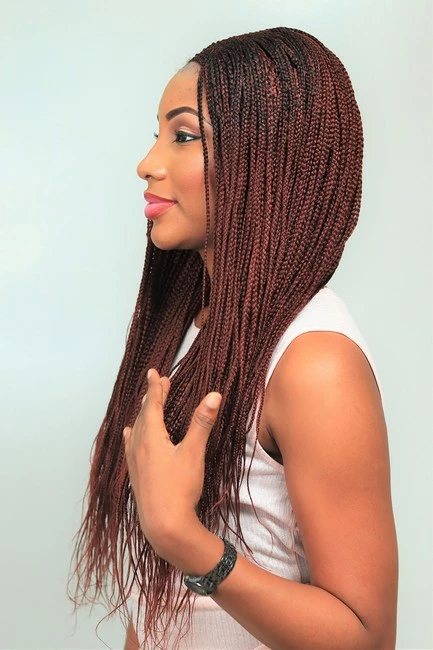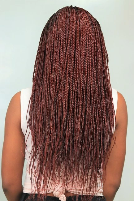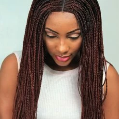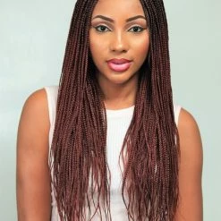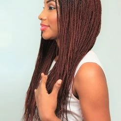 This is a light weight, natural looking, synthetic hand made wig with micro strands. Dress it up for occasions or casually for every day use. It is a perfect protective style for all hair types.
