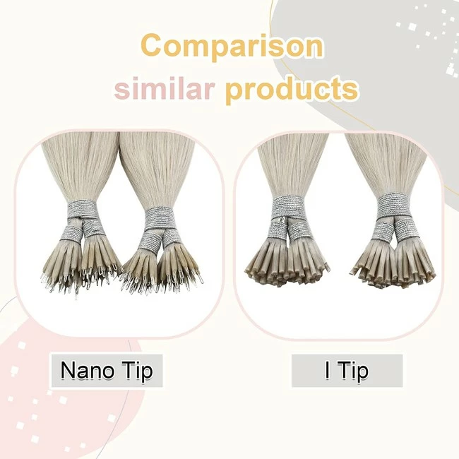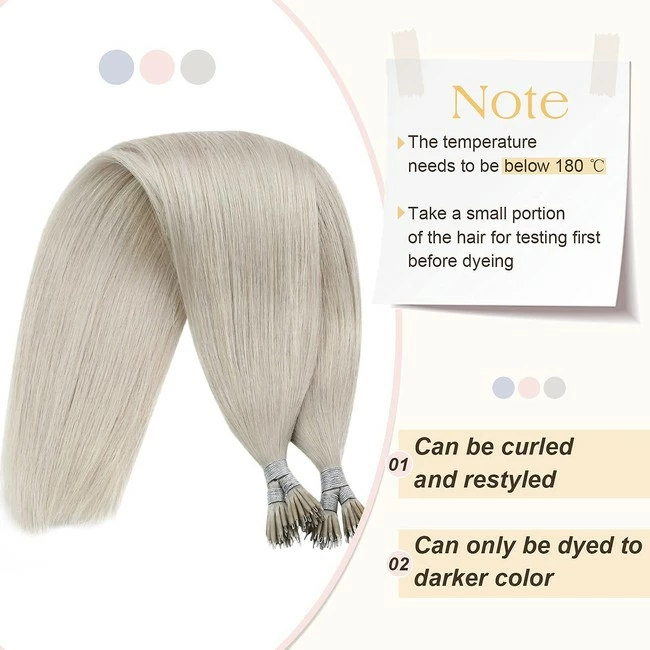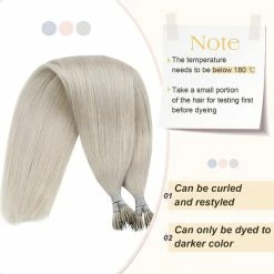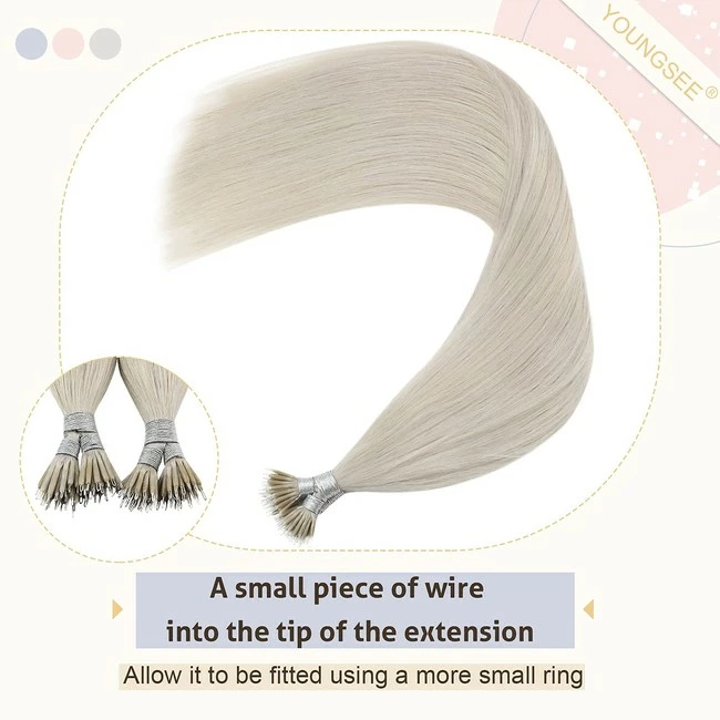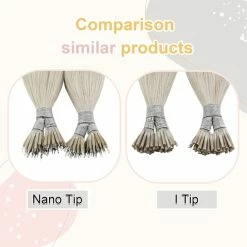 1.Nano Tip Hair Extension is very similar to stick tip hair extension, however it has a small piece of wire into the tip of the extension in order to allow it to be fitted using a more small ring. 2.Nano Ring Human Hair Extensions: 14-24inch, 1g/strand, 50strands.Remy human hair, 7A grade. no synthetic hair mixed, no tangle, no shedding , soft with natural shining.. 3.Nano ring is much smaller than micro ring in size, it make hair looking more seamlessly and natural. No heat, no glue, virtually harmless to your own scalp, can be reused. 4.Recommend 2-3 packs for full head with 14″-20″, 3-4 packs with 22″-24″.The longer the hair, the thinner it is, just like your own hair.Many hair colors can be chosen. 5.Can be straightened, curled and dyed to darker color.Due to different lights and screen, color may have a little color differences between the real item and the pictures.