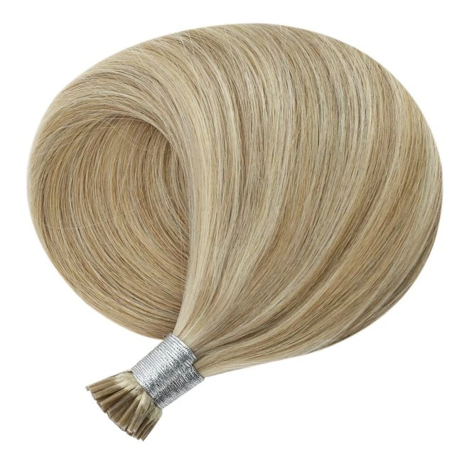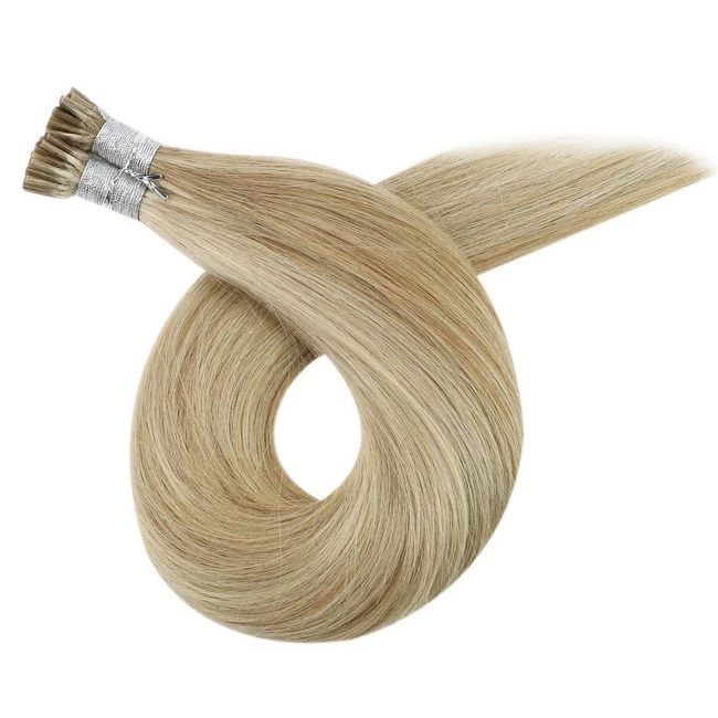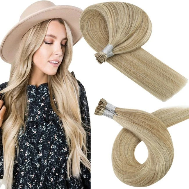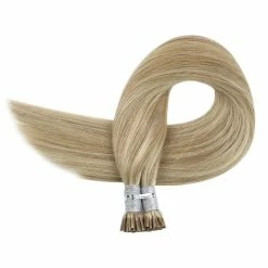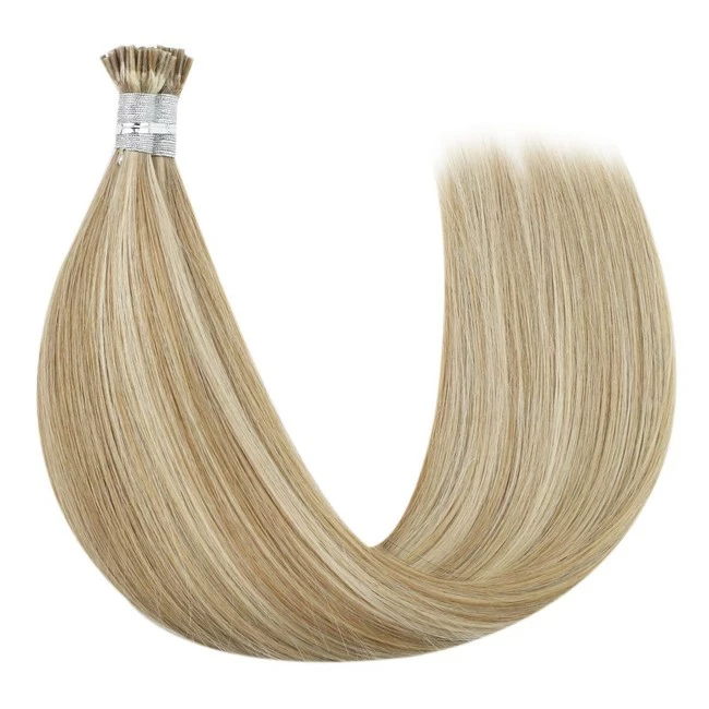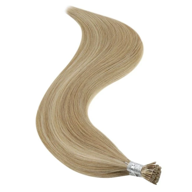 YoungSee Blonde I Tip Hair Extensions Pre Bonded I Tip Human Hair Extensions 16inch Highlights Dark Ash Blonde with #22 Blonde Hair Extensions Keratin Tip Human Hair 100strands 50gram
