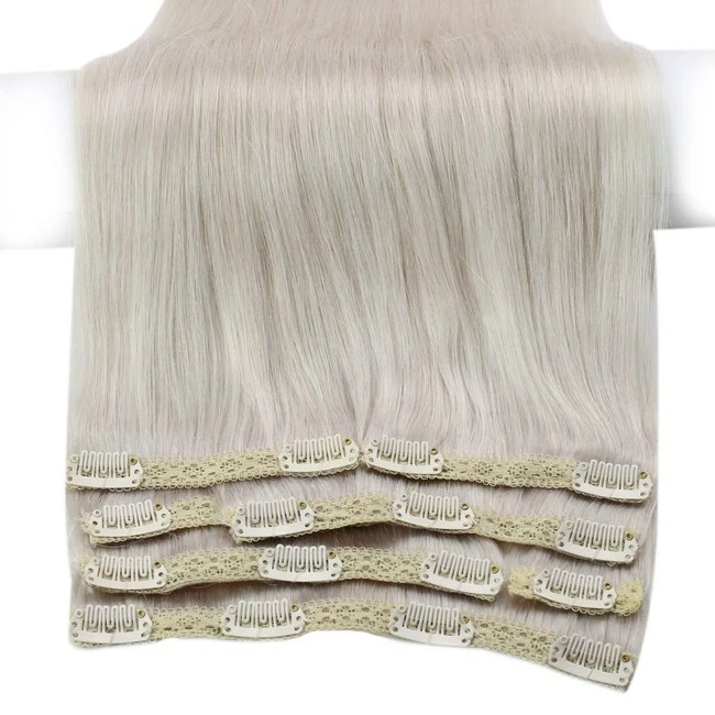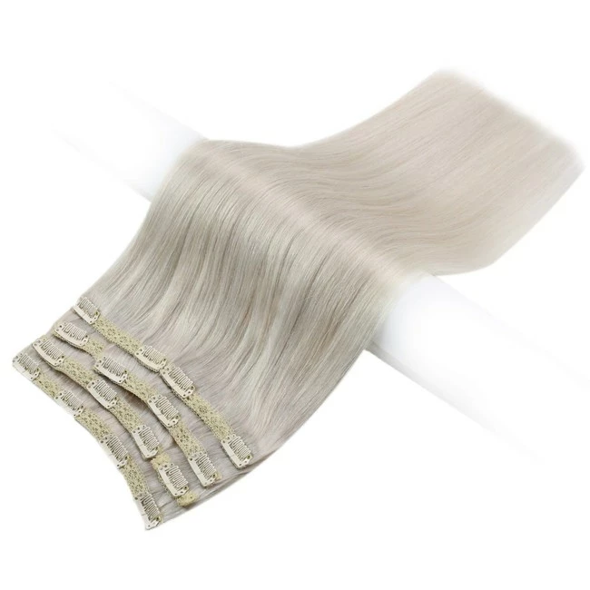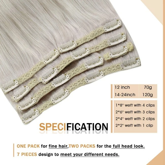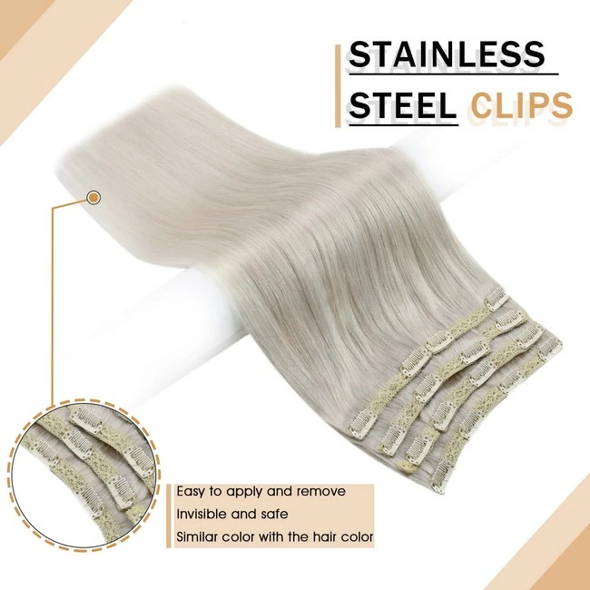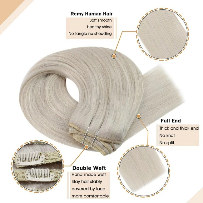 Remy Clip in Hair Extensions Platinum Blonde Double Weft Human Hair,YoungSee White Blonde Clip in Extensions Real Straight Hair Clip in Human Hair Extensions Full Head Set 7pcs/100g 16inch by YoungSee Store